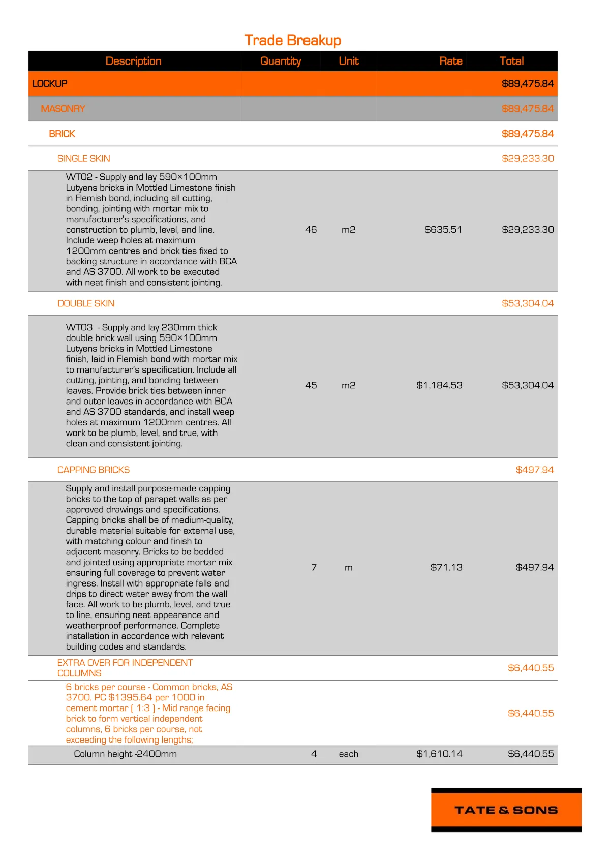 Preparation of accurate cost documentation, including Bills of Quantities and pricing schedules, to support procurement, tendering and cost control.